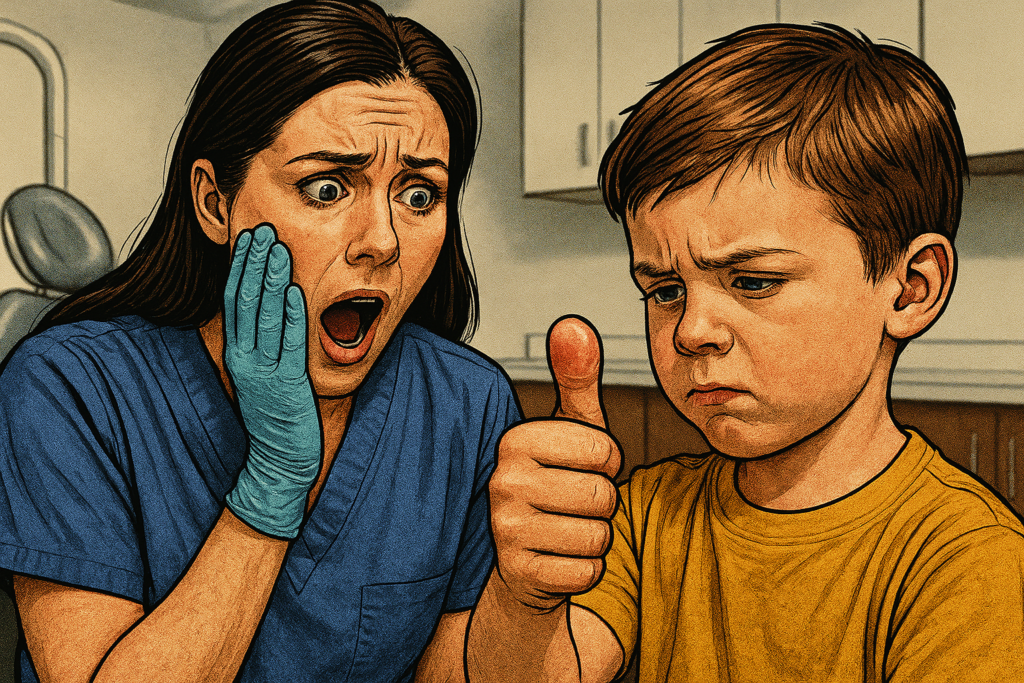 「よしよし、息子の歯も健康!」